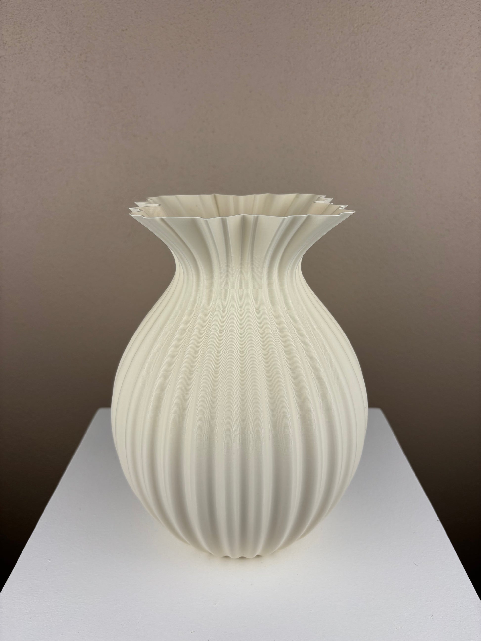 Ripple Clover vasen er en elegant variation af vores populære Clover vase. Med sin unikke halsudformning inspireret af et firkløver, udstråler denne vase en subtil skønhed og elegance. Den er perfekt til at fremhæve dine yndlingsblomster og tilføje et sofistikeret touch til ethvert rum.