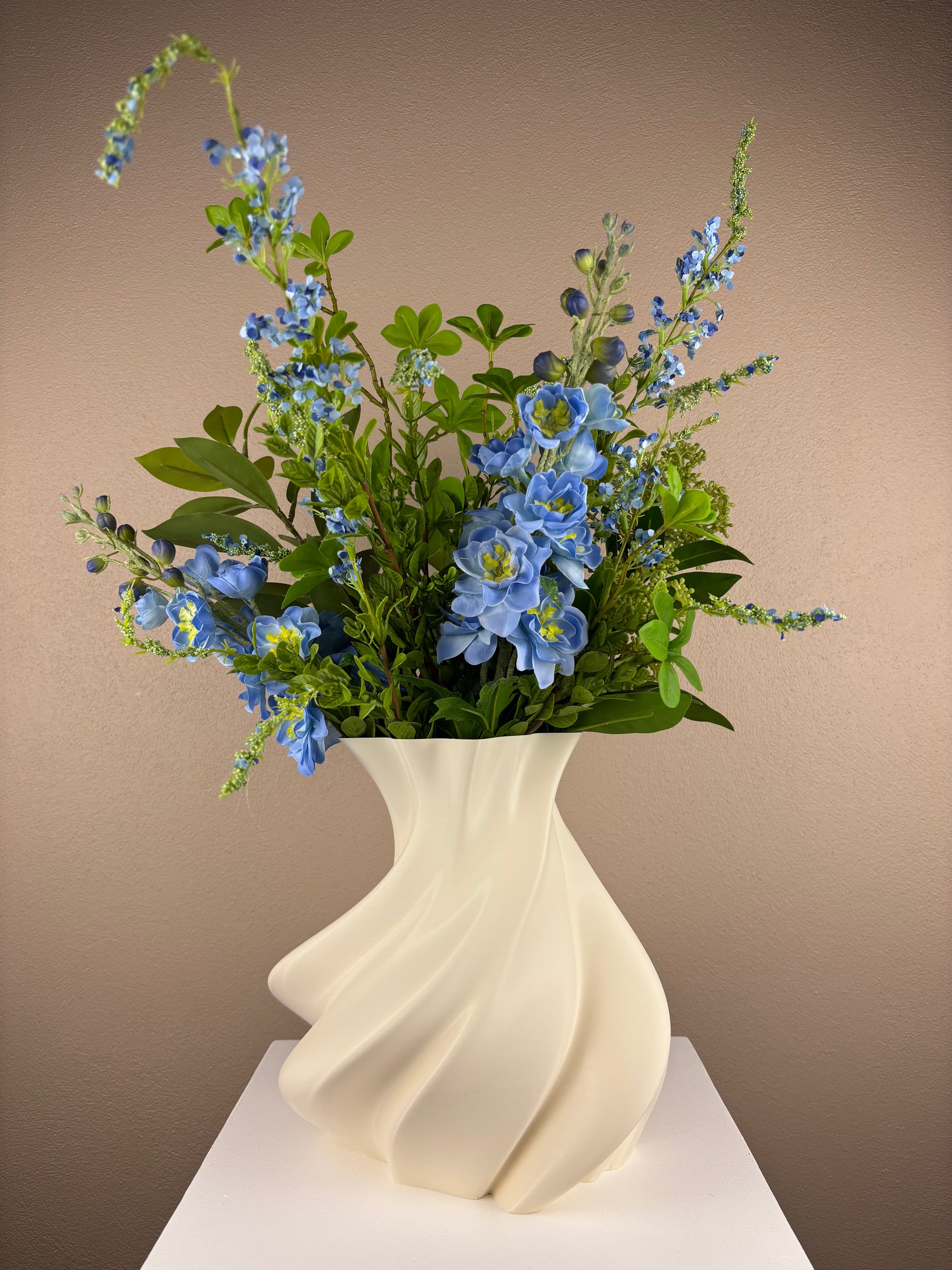 Vasen passer smukt ind i både lyse og naturlige hjem, og fungerer lige godt med enkle grene, kunstige blomster eller bare som den er. Vasen er fremstillet af et ansvarligt og bionedbrydeligt materiale lavet af sukkerrør og majsstivelse